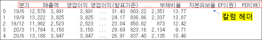 다음과 같이 칼럼 헤더가 함께 출력되게 됩니다.